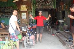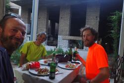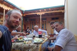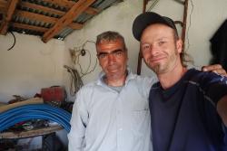 Dans le petit village de Amirabad, Mohammed nous accueille dans sa maison et nous présente sa famille. Ce sont des pêcheurs... Une grosse chambre à air de tracteur, des filets et s'est le plein de sardines... Nous sommes reçu comme des rois, goûter, ice cream, thé et repas traditionnel entre hommes à base de riz et de poisson... Aref, le fils de Mohammed qui est agé de 18 ans parle un petit peu anglais et assure la traduction. On parle politique, religion, du coût de la vie en Europe, en Iran, foot, sport, vélo... C'est un moment très riche et convivial... Le soir d'après, on s'arrête dans un petit parque/camping (il est possible de camper dans presque tous les parques en Iran, souvent gratuitement ou pour 1 euro...) et on va voir le match de foot Iran-Maroc au bar à thé et à narguilé avec les gens du coin. A la mi-temps, on mange un sandwich à coté et sympatisons avec le patron... Encore une belle soirée...