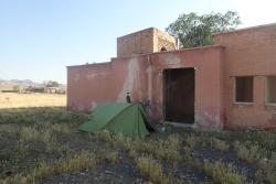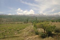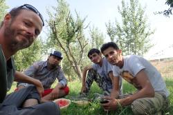 A la sortie de la ville de Sarab, nous tournons dans la campagne cherchant un endroit pour camper. Ali nous aperçoit et nous fait signe de le suivre. Il nous installe dans son cabanon de jardin ou il y a l'électricité, le gaz, des toilettes et la TV. Le lendemain matin, il nous ramène le petit déjeuner et nous montre la photo d'un couple de cyclo français qu'il a hébergé au même endroit cet hiver... Un jour, un couple s'arrête en voiture et nous donne 1 kg de cerises, le lendemain, une grosse voiture roule à notre niveau, ouvre la fenêtre et nous donne une poignée d'abricots.