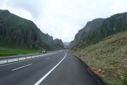 Plus loin, nous roulons toujours sur le haut plateau à 1600m d'altitude et devons descendre 40 km pour nous retrouver à -28m au bord de la mer dans la ville d'Astara... Nous filons entre 40kms/h et 60kms/h, doublant les camions qui descendent lentement et évitant les voitures qui doublent en face...