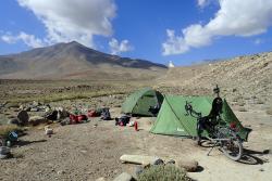 Finalement, un gars de la station m'emmène voir son chef, les deux hommes discutent et me proposent finalement de démarrer le télécabine, d'y accrocher mon vélo et de me monter jusqu'au col et tout cela gratuitement! Me voilà donc à 3200m d'altitude sans trop d'efforts et juste 40kms de descente pour rejoindre Lavasan...